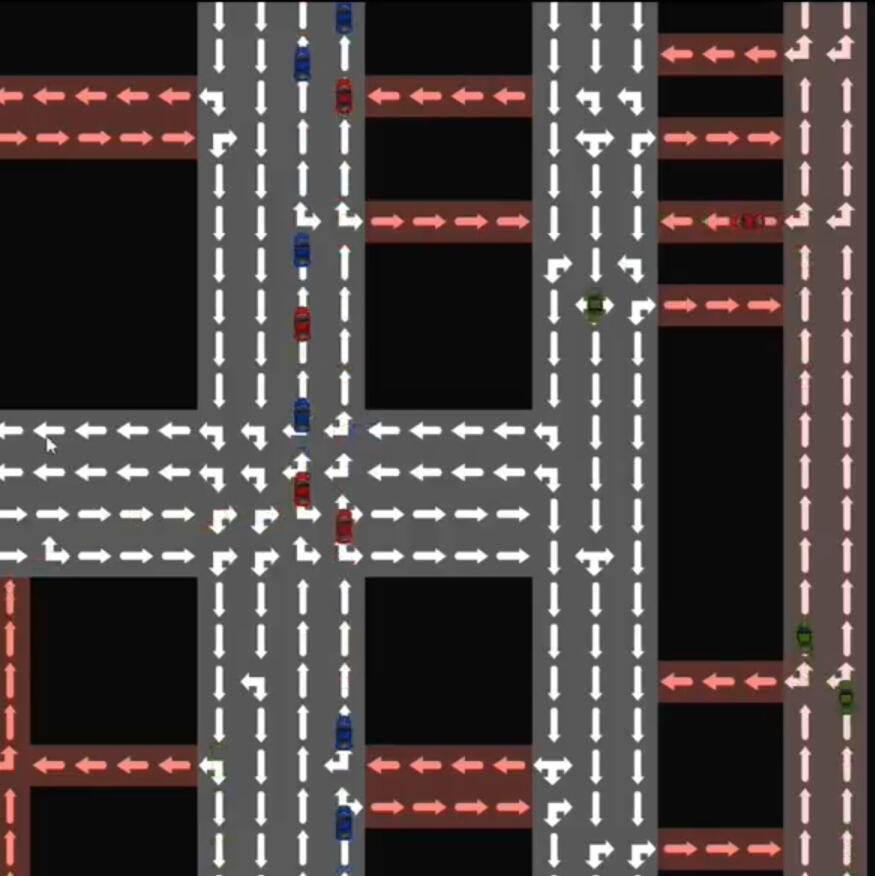 In this city traffic simulation, I was responsible for the AI's "SpeedMap". It represents the different speeds of all tiles on the map and the different colored cars have different priorities when pathfinding using A* ("A-star"). If I could re-visit this project I would like to add support so that the vehicles can update their pathfinding at runtime depending on the location of other vehicles, like applications such as Waze, and Google Maps do.